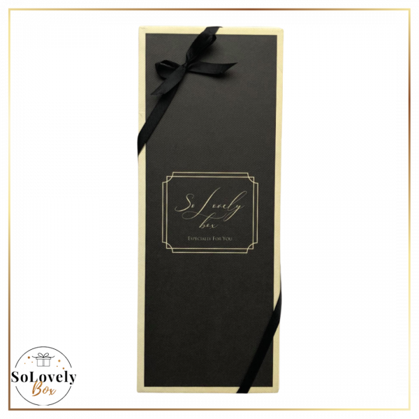 Die personalisierte Alkoholflasche wird in der schwarzen oder weißen Glamour Collection Box als Geschenk verpackt, die von einem Geschenkband mit Spruch verziert wird.