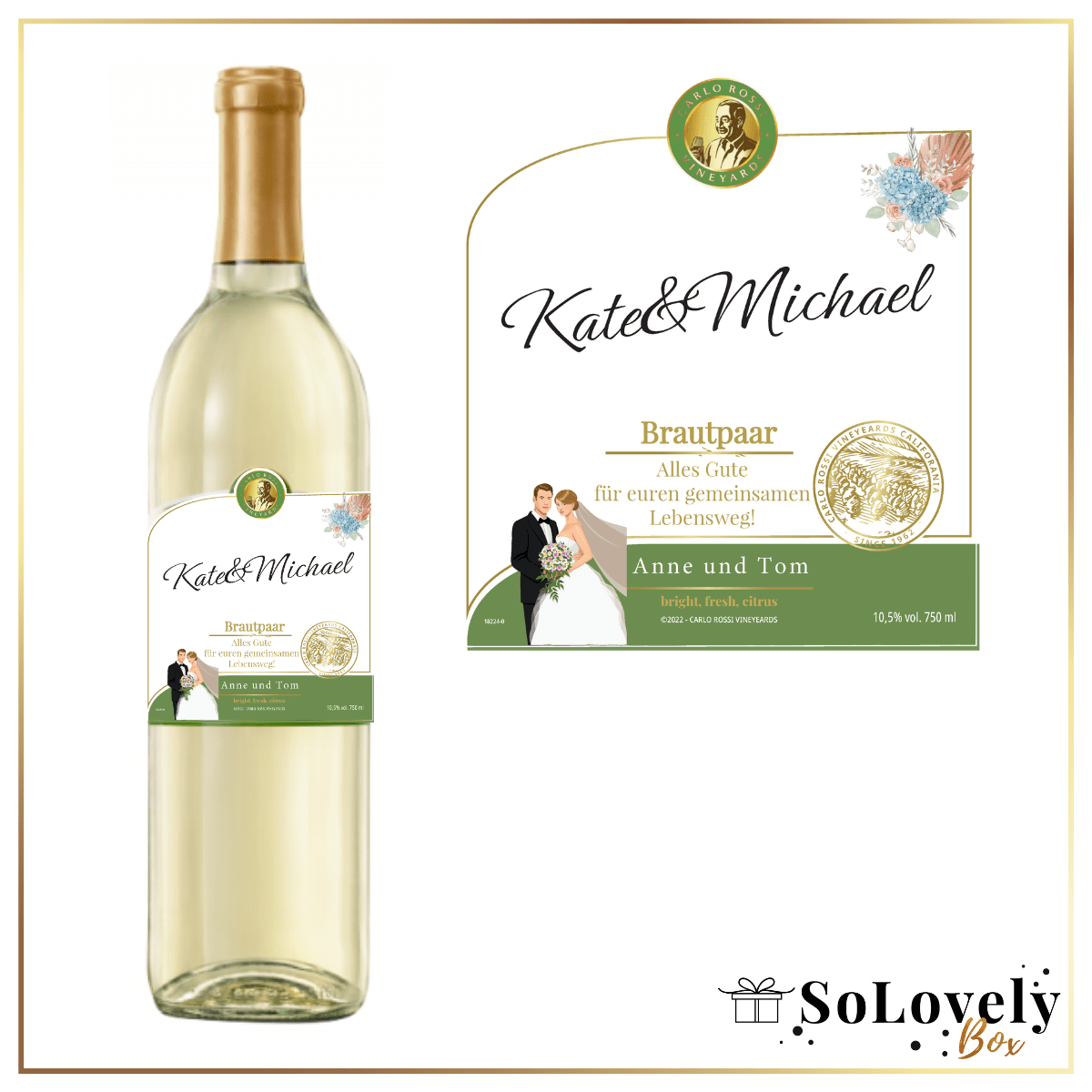 Das personalisierte Etikett verleiht jeder Flasche eine persönliche Note und macht sie zu einem besonderen Geschenk für das Brautpaar.