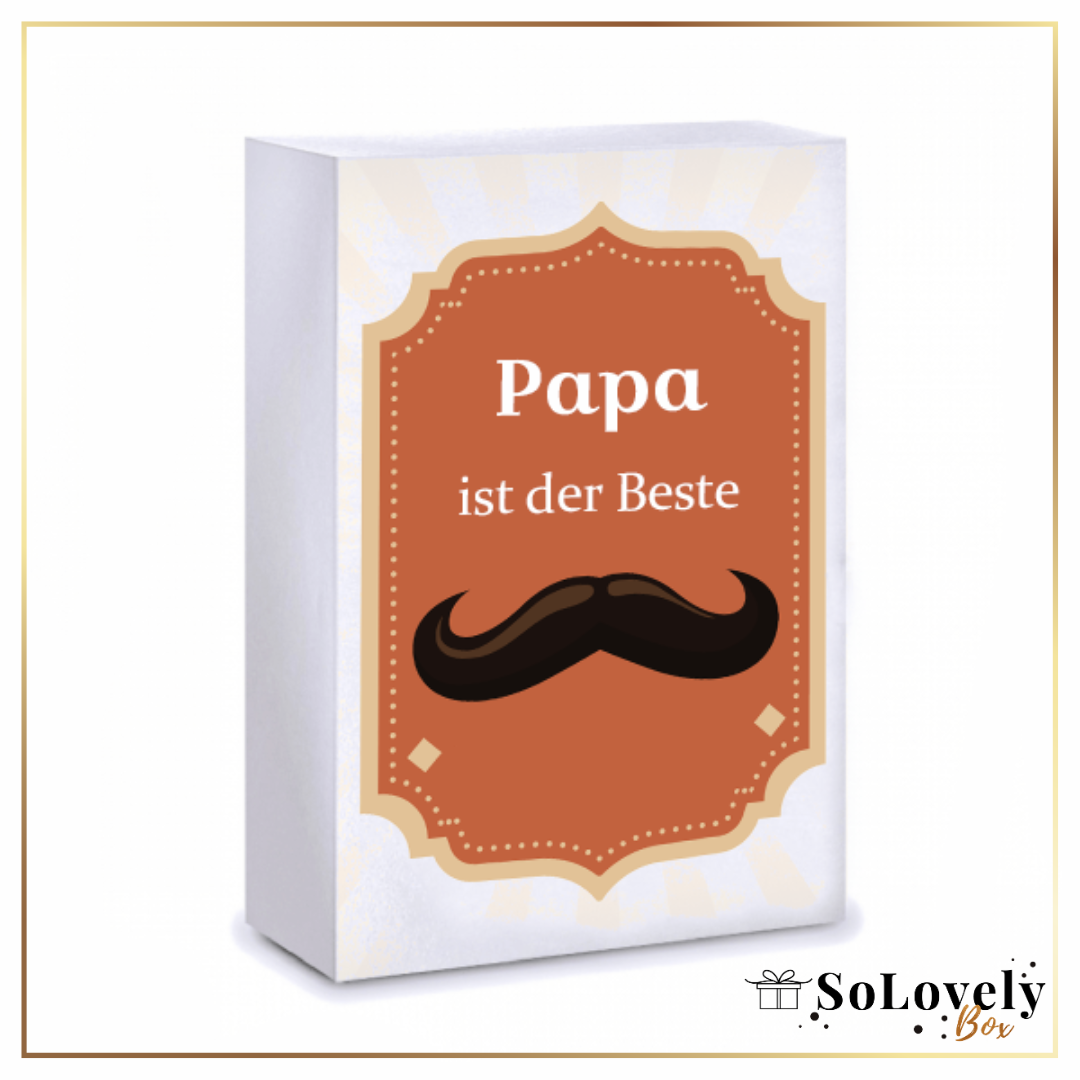 Außergewöhnliche Geschenke verdienen eine besondere und originelle Verpackung, und genau das ist die personalisierte Box von Alkohol Na Gift. Ein Geschenkkarton mit Ihrem eigenen Aufdruck ist das perfekte Geschenk zum Vatertag, das dem Geschenk eine persönliche Note verleiht und jahrelang in Erinnerung bleibt. Ein weißer Geschenkkarton mit bunten Grafiken und einem Text Ihrer Wahl macht Ihr Geschenk zu etwas ganz Besonderem und wird Ihren Vater begeistern. Oft fragt man sich, was man für ein Geschenk kaufen soll - die personalisierte Geschenkbox mit Ihrem eigenen Text ist die perfekte Ergänzung zu Ihrem Vatertagsgeschenk! Kombinieren Sie die personalisierte Box mit Produkten aus unserer Website und stellen Sie ein echtes Geschenkset für Papa zusammen.